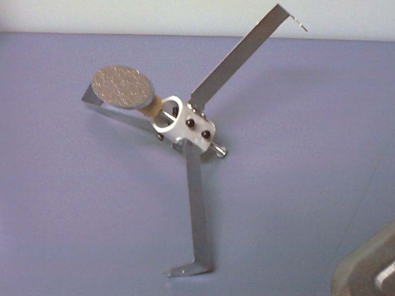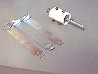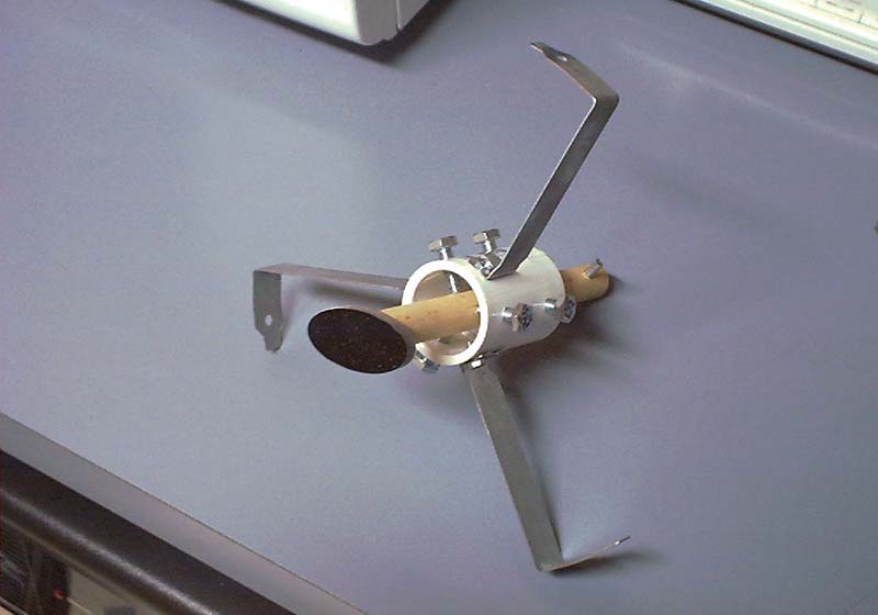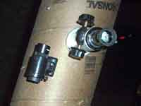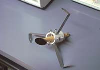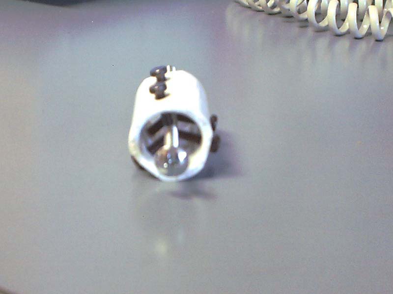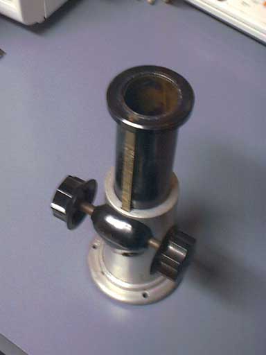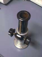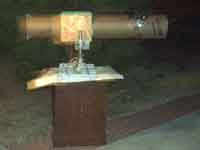 - Friday 2001/12/14 - I went to meet with the observatory director and got a mirror and a focuser. He also made me a collimating tool from a plastic film cannister and suggested a design for an adjustable focuser (my realization of that design shown below).