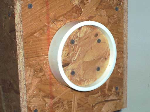 - I used a 4 inch PVC coupling for each bearing. I cut out 1.5 inches in the middle to have a lip for the wood to sit on. There's a 1/4 inch ring for the pipes to bottom out on and I left 1/4 inch pipe on one side (towards the tube box) and 3/4 inch on the other side.