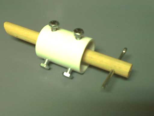 - I trimmed off the dowel, drilled a small hole and threaded the 4" machine screw into the dowel.